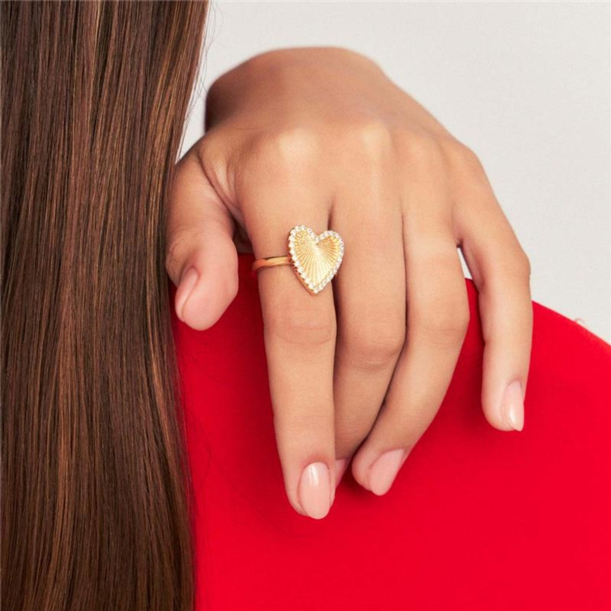 Anel de coração liso e cravejado de zircônias na cor branca banhado a ouro. Peças com o tema de coração, são clássicas que nunca saem de moda, transmitindo muito sentimento e emoção, o coração é uma peça atemporal aposte nelas sem medo de errar!